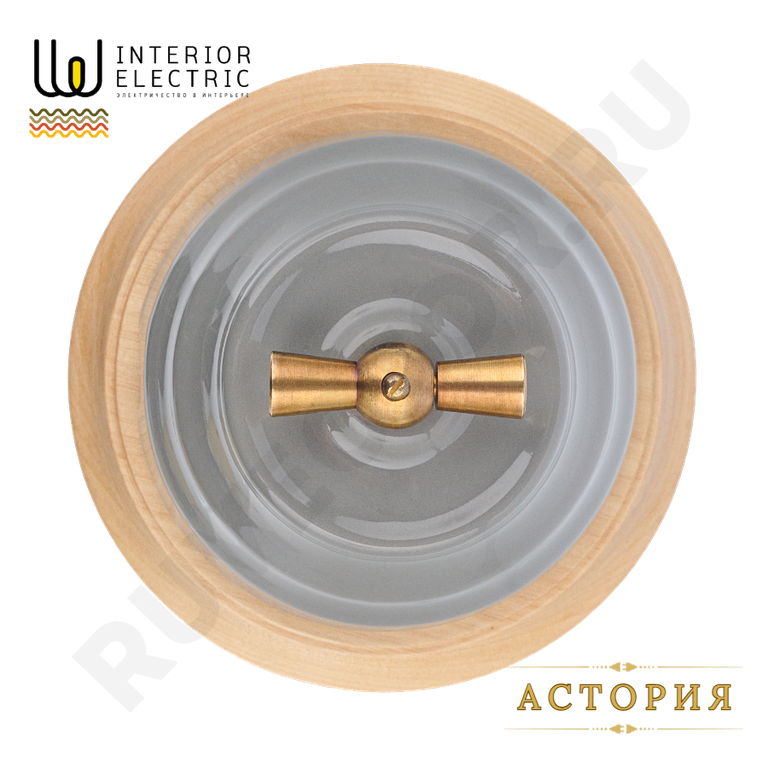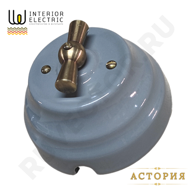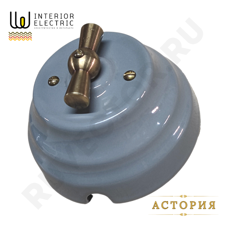 Поворотный выключатель в ретро стиле из керамики, серый, ПРОХОДНОЙ.