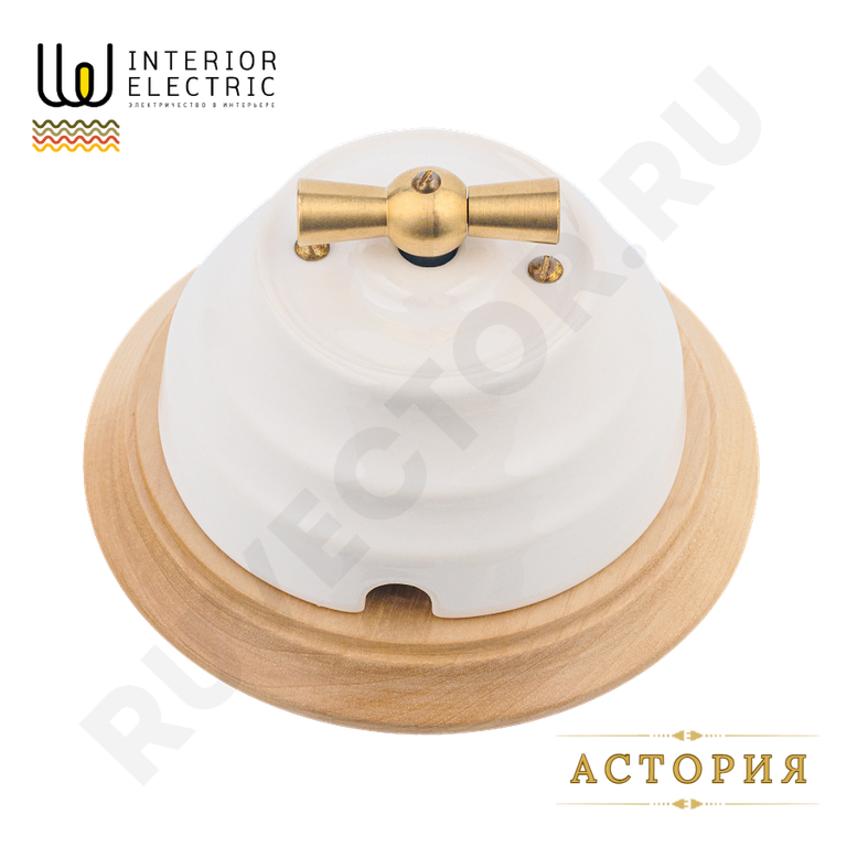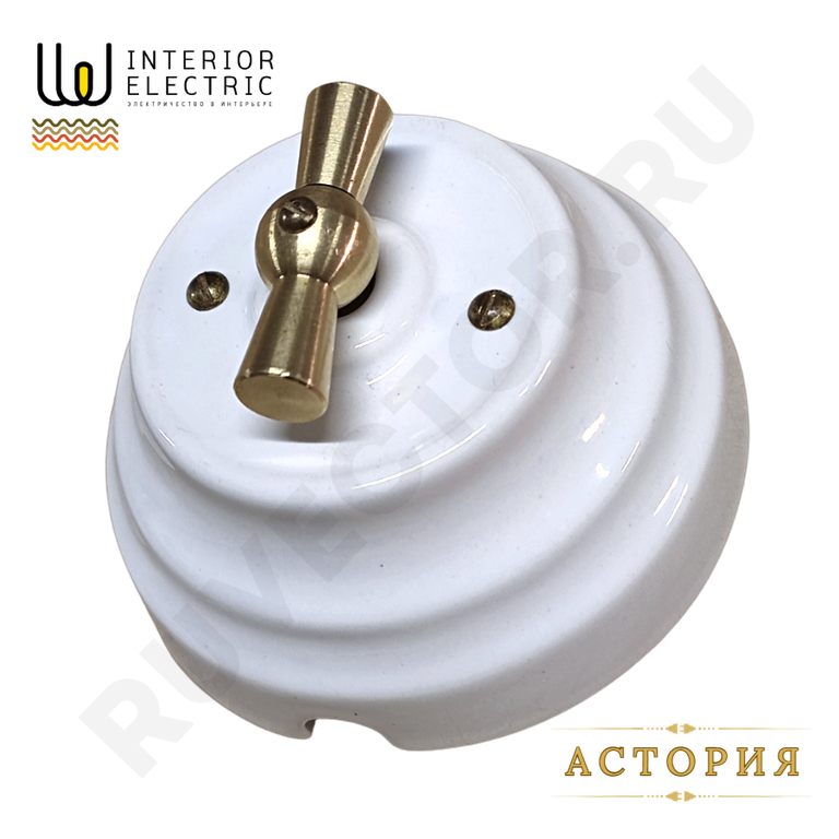 Поворотный выключатель в ретро стиле из керамики, белый, ПРОХОДНОЙ.