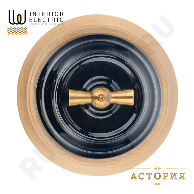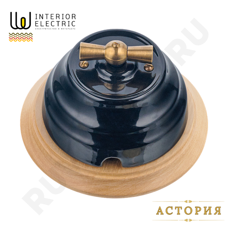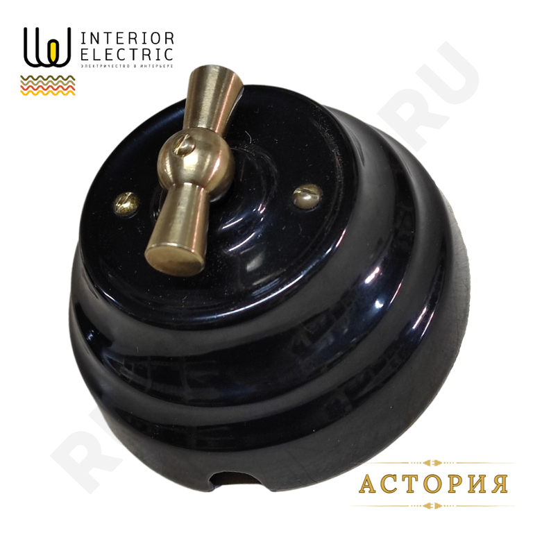 Поворотный выключатель в ретро стиле из керамики, черный.