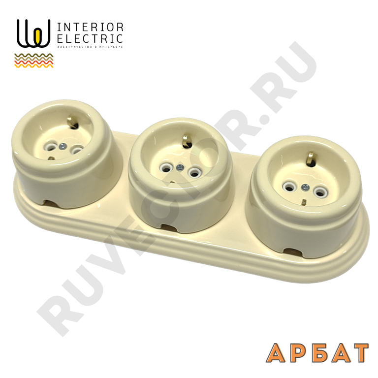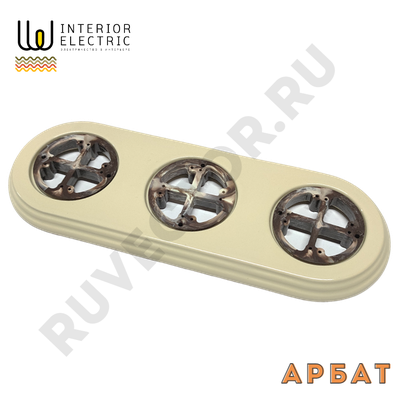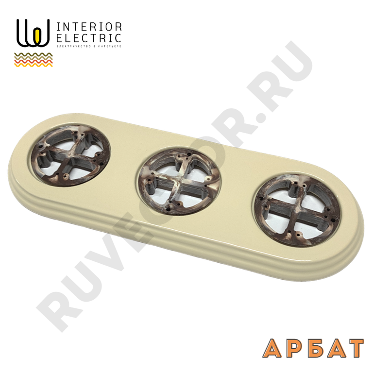 Тройная керамическая На Бревно подложка для ретро розеток слоновая кость.
