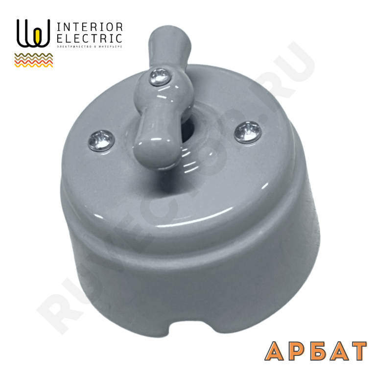 Выключатель керамический поворотный в ретро стиле Арбат серый.